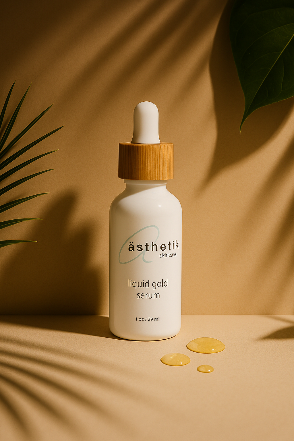 Our award-winning Liquid Gold Serum is esthetician-formulated to hydrate, calm, and smooth while supporting a healthy skin barrier. Daily use transforms skin—softening fine lines, evening tone, and restoring a radiant, youthful glow.